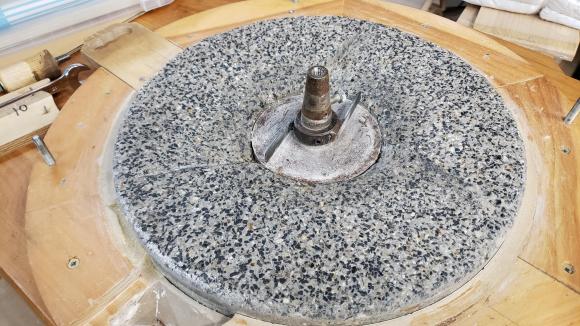 そば、小麦、炒った大豆等の穀物製粉に適した中型石臼製粉機です。