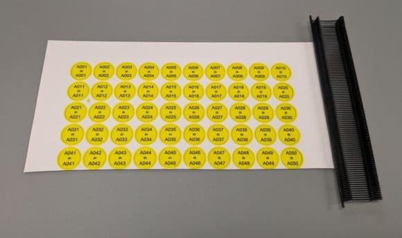 耐候性に優れた塩ビ製のシートを加工した円盤状のタグです。
